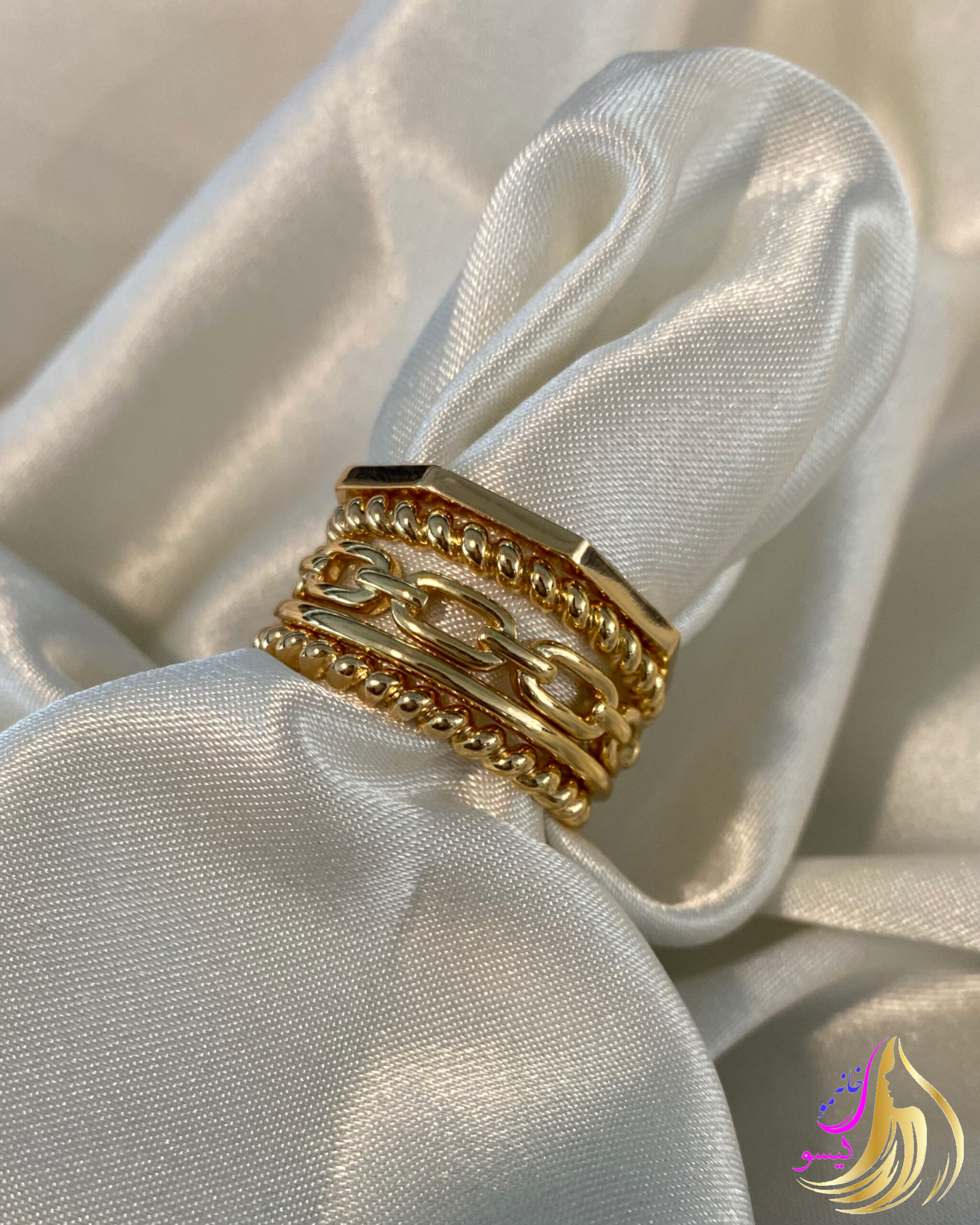 خرید انگشتر شیک پنج لاین طلایی کد BN917 از غرفه انگشتر خانه مو گیسو.