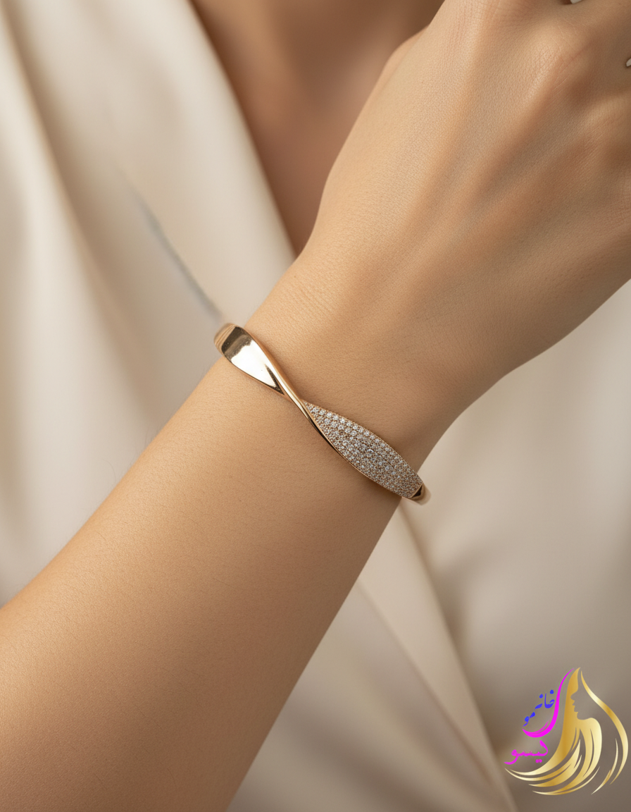 خرید و قیمت دستبند بنگل ژوپینگ طرح جواهری نگیندار از غرفه دستبند خانه مو گیسو