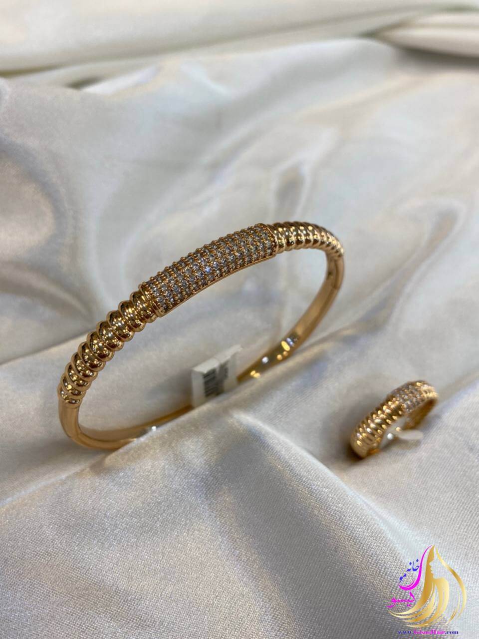 خانه بدلیجات دستبند دستبند و انگشتر ست نگین ریز طلایی