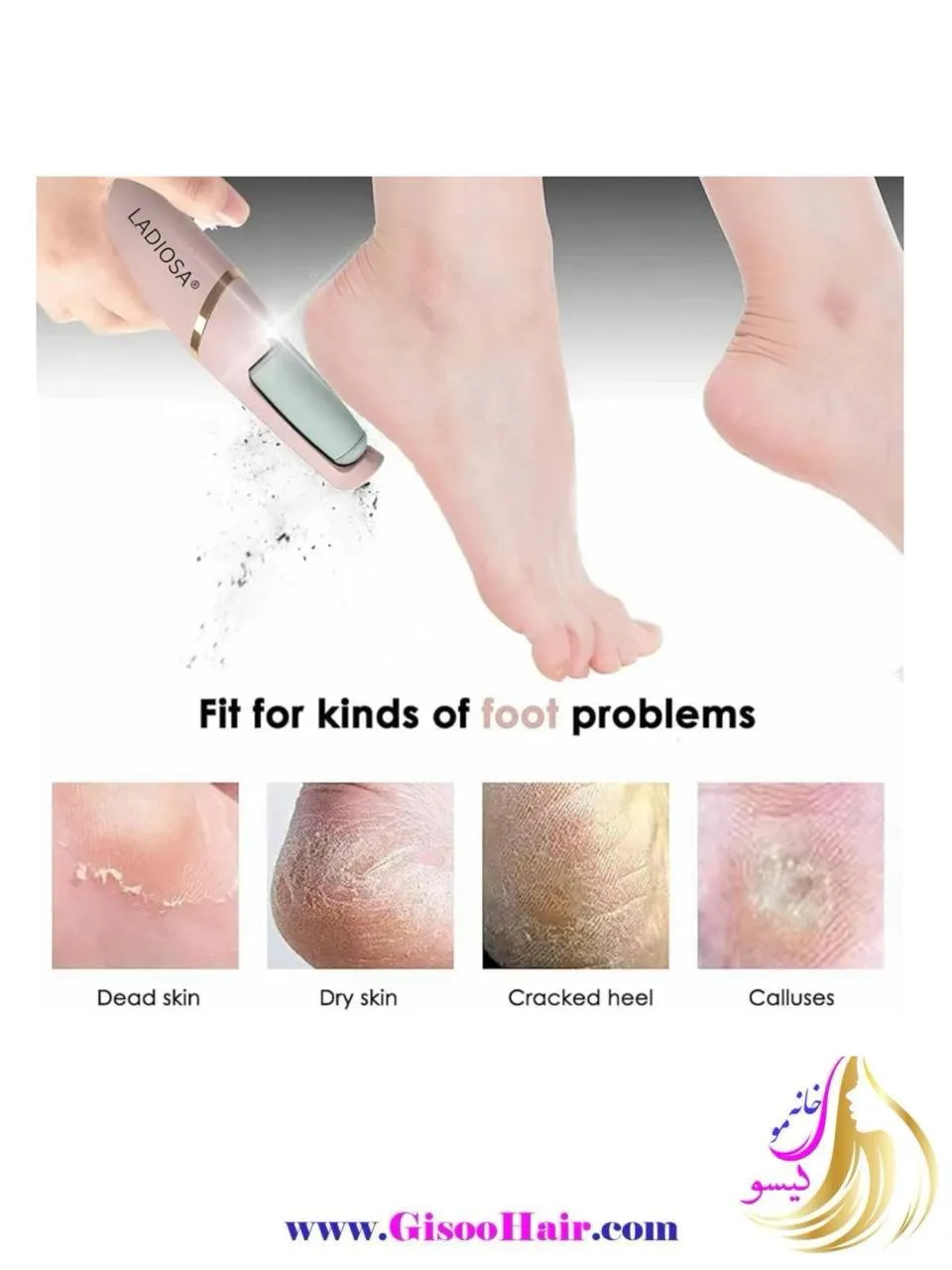 یک ابزار حرفهای و راحت برای مراقبت از پاها مناسب برای حذف پوستهای مرده، پینه و زبری، با استفاده آسان در خانه.