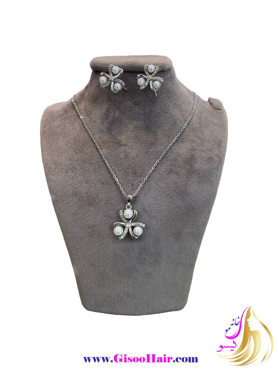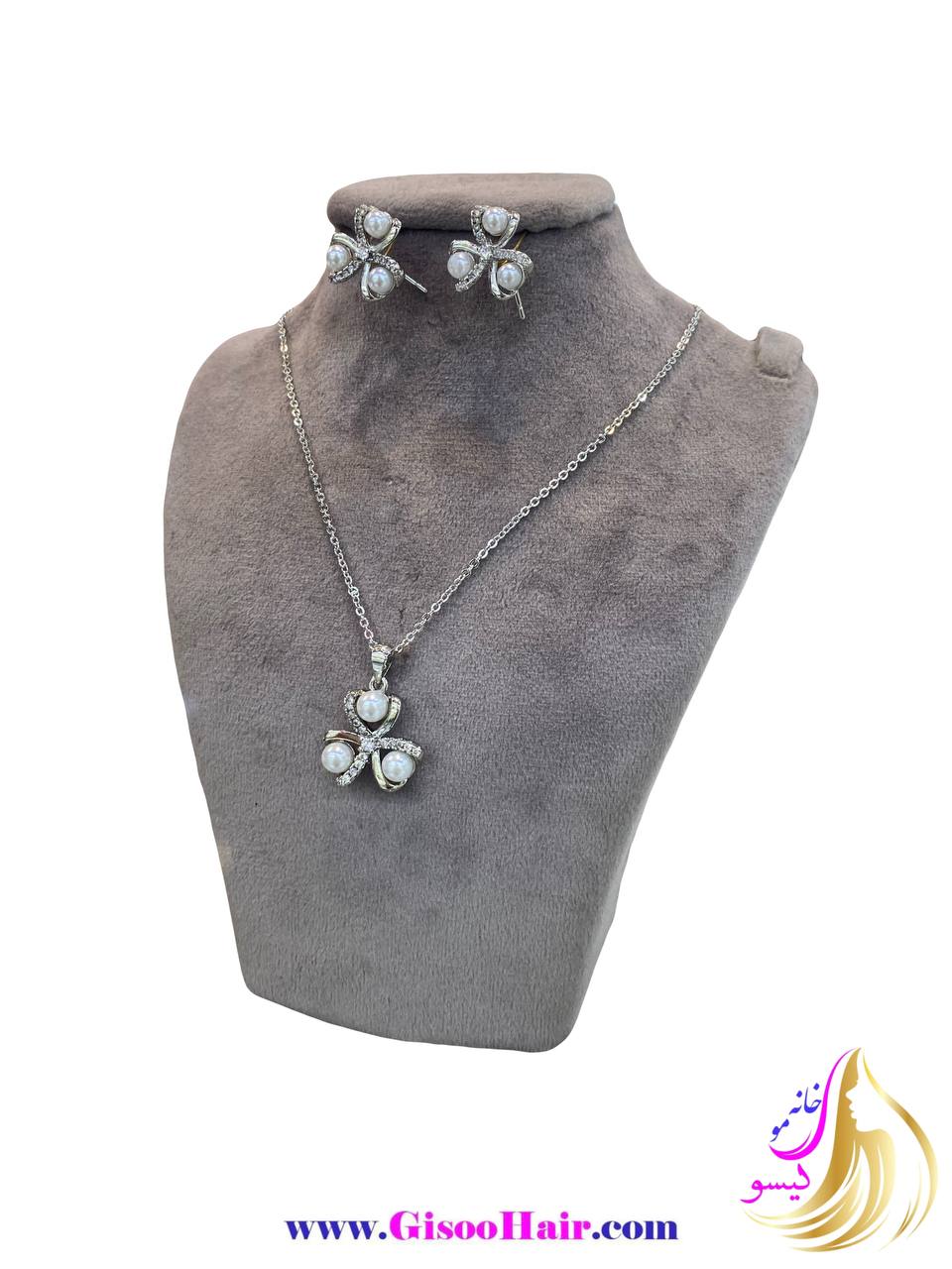 • نیم ست استیل نقره ای طرح مرواریدی