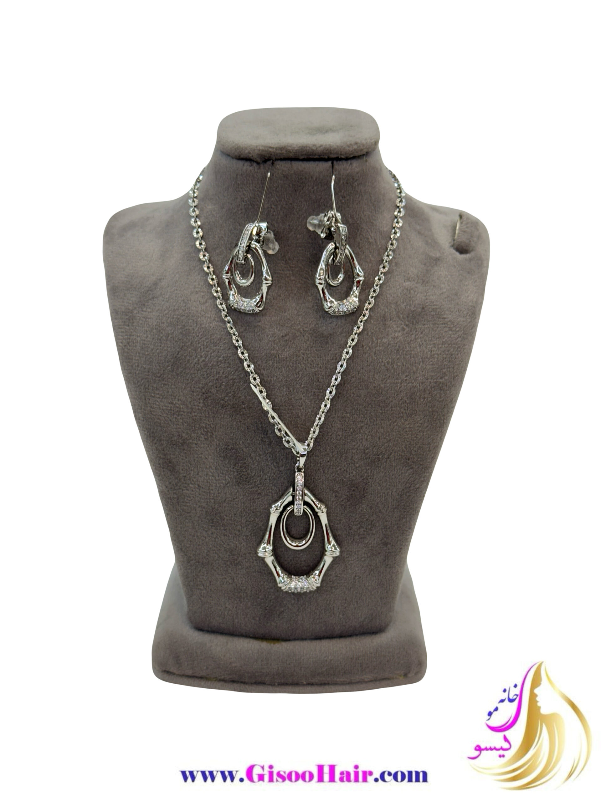 خرید و قیمت نیم ست استیل طرح جواهری نقره ای رنگ ثابت از غرفه نیم ست خانه مو گیسو …