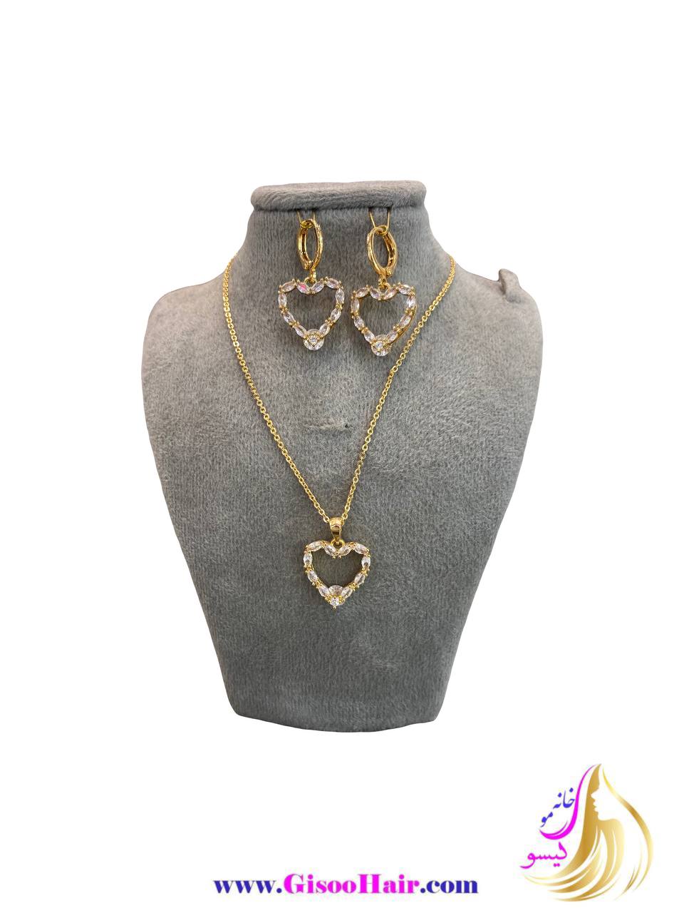 نیم ست طرح قلب نگین دار استیل