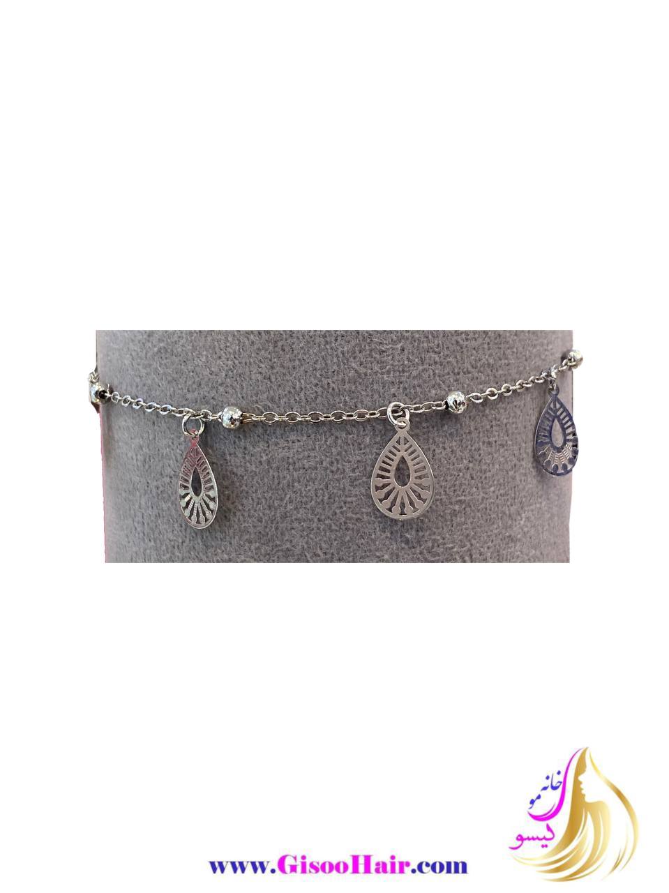 خرید پابند نقره ای با آویز اشک جنس استیل از خانه مو گیسو.