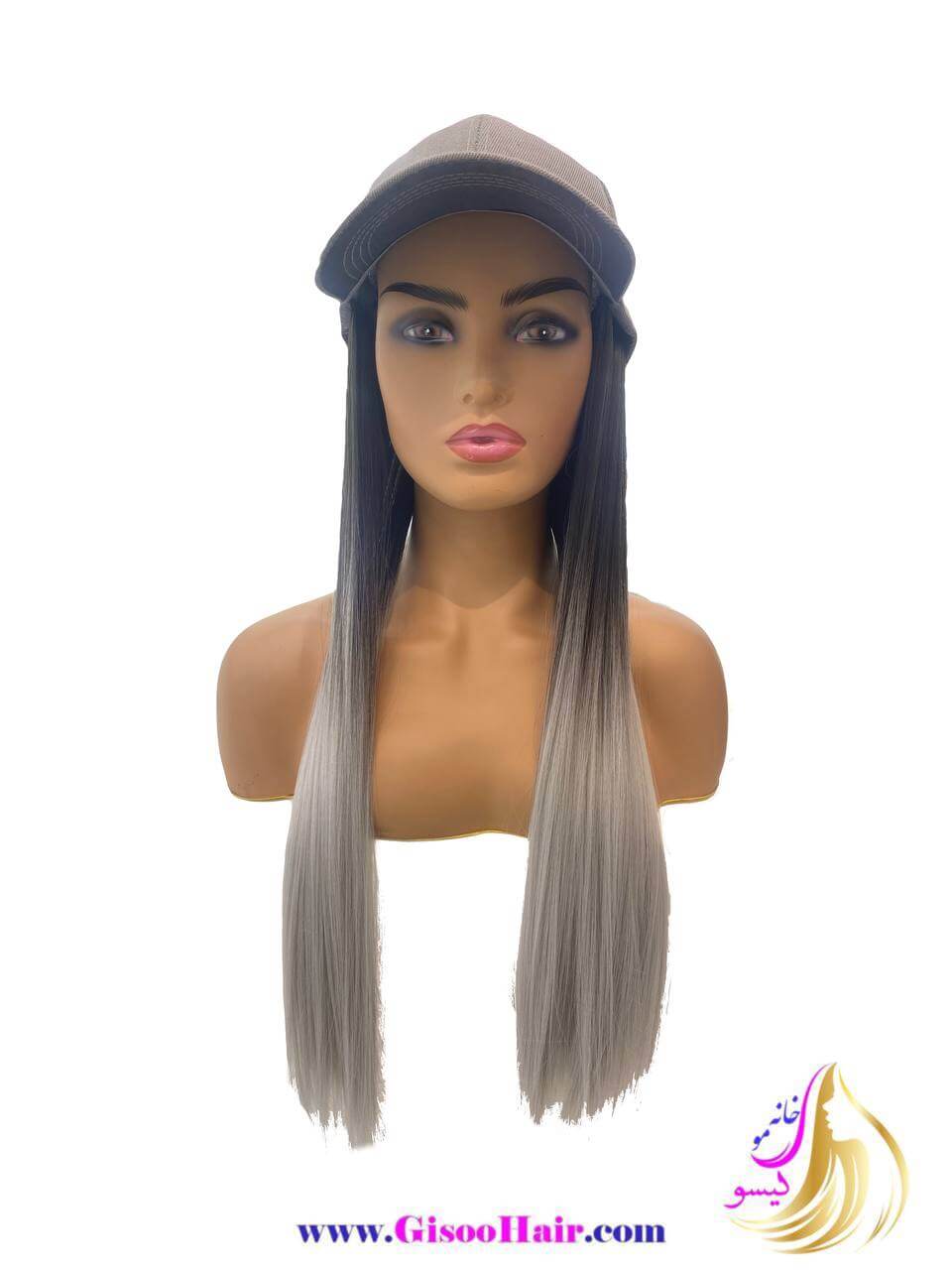 خانه مو مو مصنوعی کلاه مویی نقابدار کلاه مویی آمبره رنگ خاکستری روشن 70 سانت