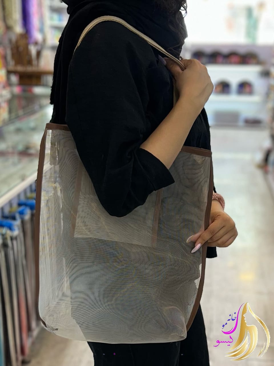 این کیف توری با رنگهای جذاب و پرطرفدار قهوهای و مشکی، یک انتخاب مدرن و کاربردی برای شماست. طراحی توری این کیف، ظاهری متفاوت و شیک به آن بخشیده و برای استفاده در فصول گرم سال یا در سفر به ساحل بسیار مناسب است.
