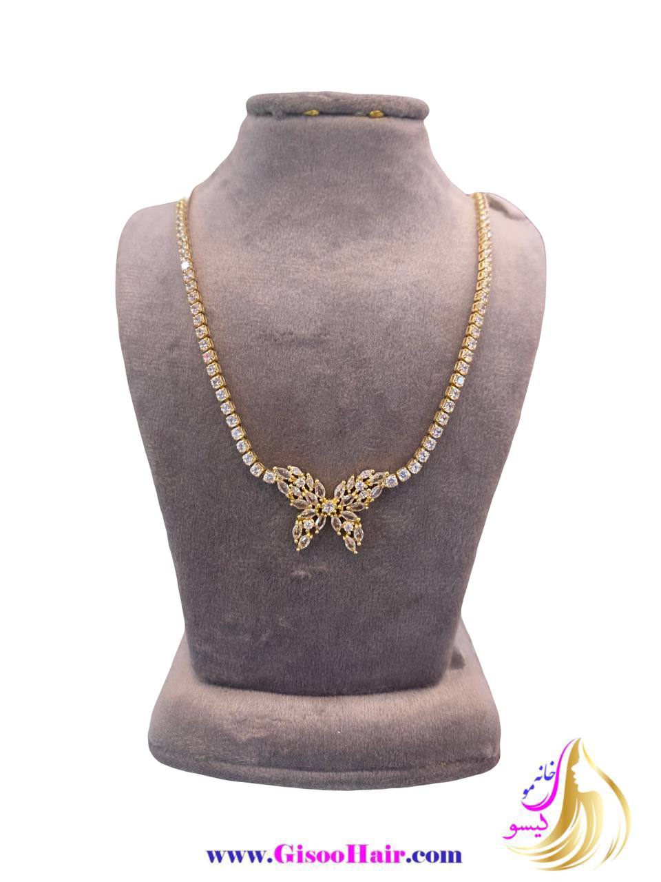 گردنبند زنانه استیل طلایی مدل پروانه نگیندار