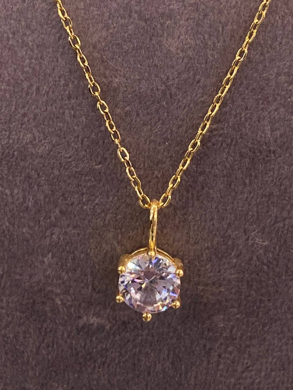 گردنبند زنجیر پلاک استیل طلایی مدل تک نگین