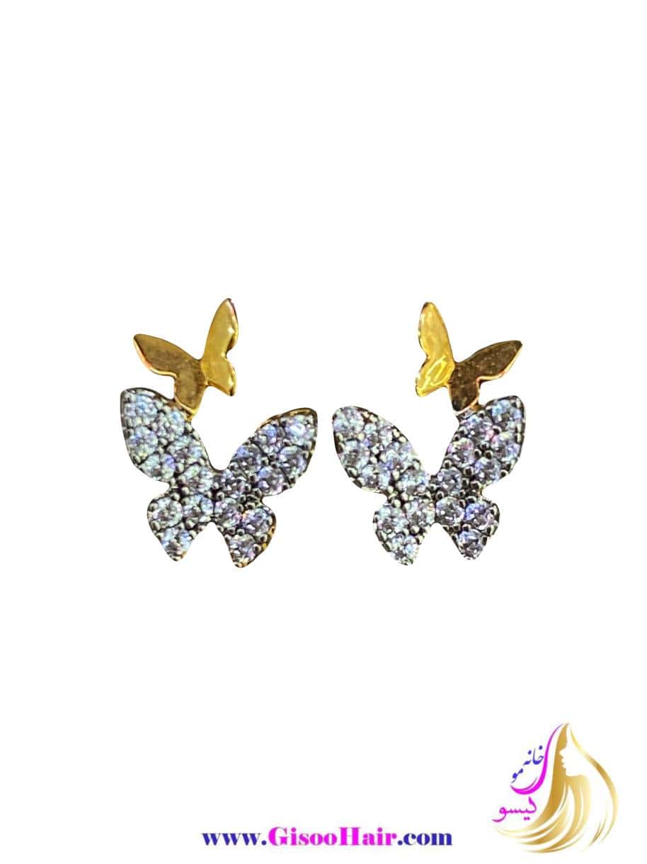 گوشواره میخی ژوپینگ مدل پروانه دوتایی نگینی