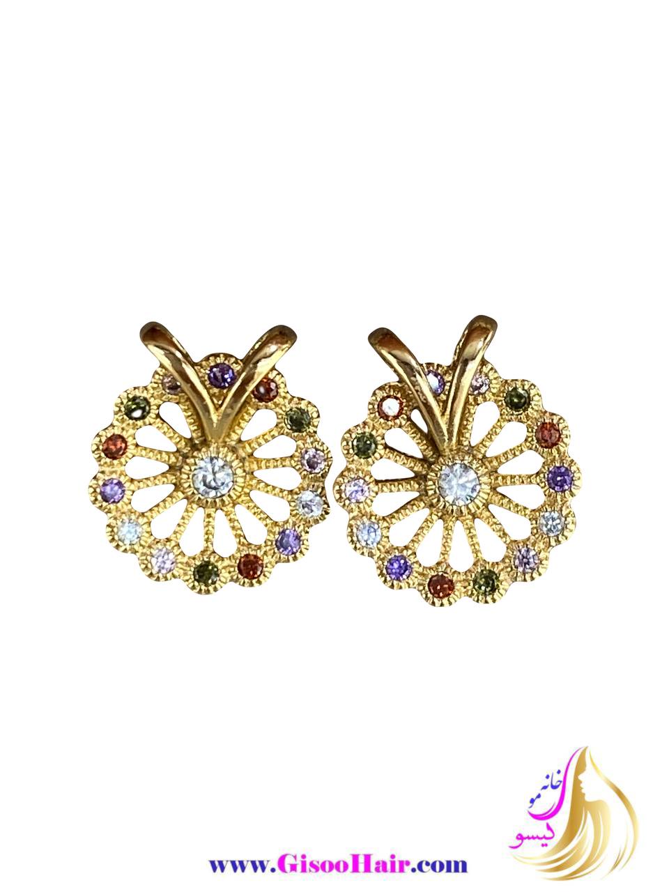 گوشواره میخی ژوپینگ نگین رنگی طلایی